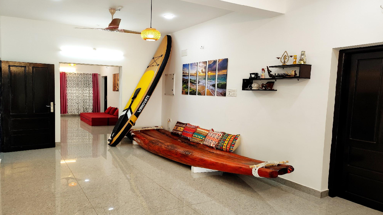 Experience tranquility at Happy Buddha Homestay, nestled near Varkala’s serene beaches. Our cozy and modern accommodations offer comfort, free Wi-Fi, a rooftop lounge, and an open kitchen. Whether you're here to relax, work, or explore, enjoy a community vibe where travelers connect, share stories, and immerse in local culture. Come as a guest, leave as family.